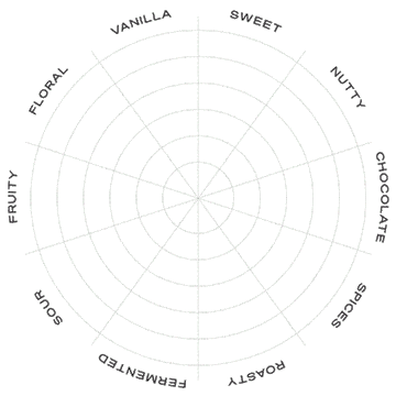 Carbonic macerated Columbian Castillo and a full bodied Ethiopian single O meet up for a choc-cherry explosion. Medium roasted to max out a full coffee tasting wheel experience.